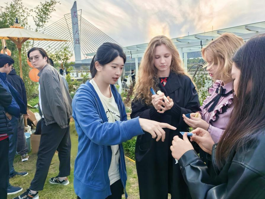 留學生們對荷琇的中醫古方“提神凝露”展現出濃厚的興趣,詳細了解、詢問相關功效、成分。